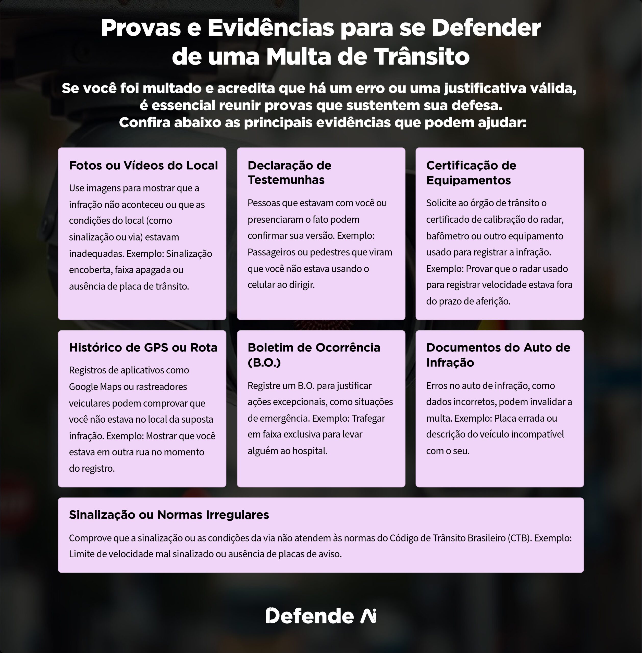 Exemplos de Provas e Evidências para se Defender de uma Multa de Transito